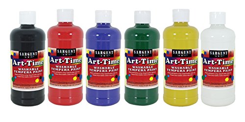 Sargent Art 16 Ounce Bottles, 6 Different Colors Art-Time Washable Tempera Paint, 17-3406, 6 Piece