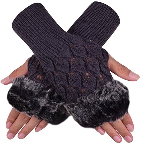 The knit fingerless gloves with fur keep the palms, and wrist warm as well as still use the phone, computer, and other touch screen devices.