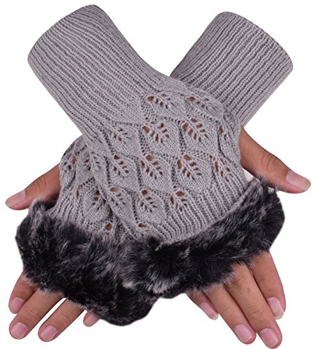 The womens gloves with finger holes looks nice and stylish, they are design with cute knit pattern and fur on the cuff.