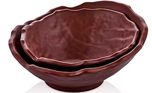 2 pcs Slanted Shape Melamine Bowl set Fruit bowl set Serving Bowl Salad Bowl Snack Bowl set,Brown (S. Bowl K)