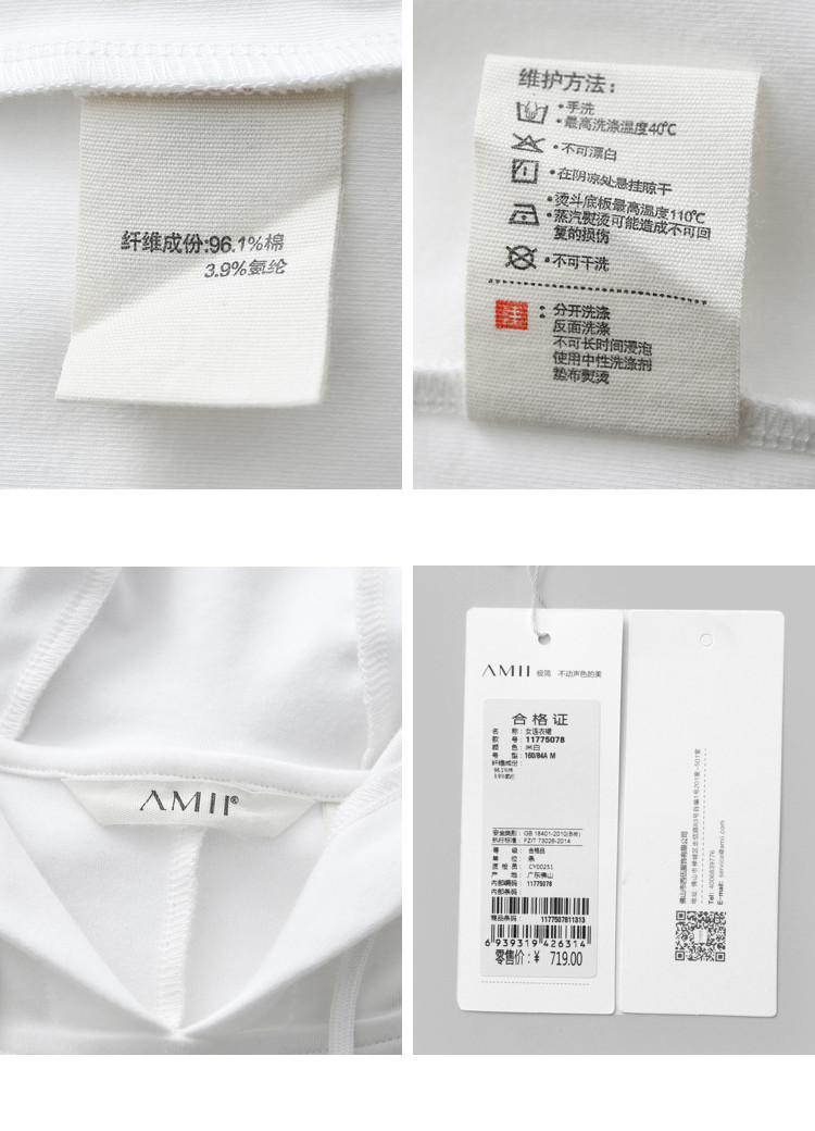 | 洗涤标准: | 不可漂白40℃以下手洗悬挂晾干不可浸泡不可干洗110℃以下垫布熨烫 |