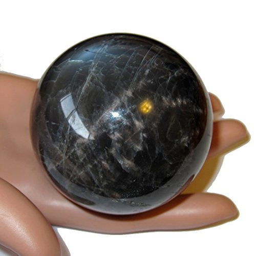 Satin Crystals Moonstone Black Ball 2.4" Collectible Opal Sheen Beauty in the Beholder Healing Sphere Stone C04