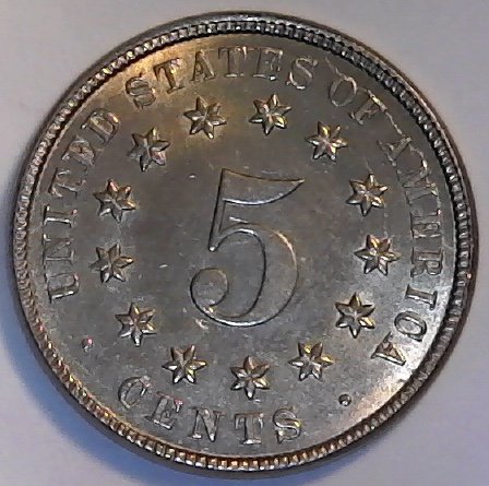 1859 . Half Dime Type collection Shield Liberty Nickel Comes in holder AU