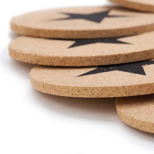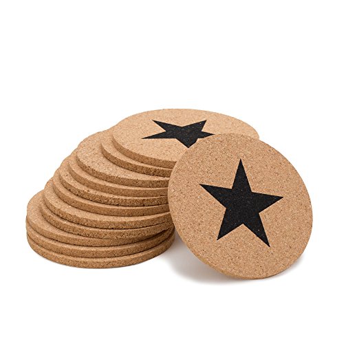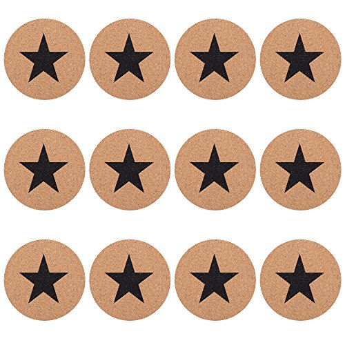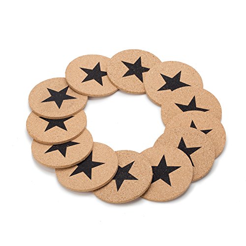 GA Homefavor 12-Piece Coasters Cup Mats Black Stars Cork