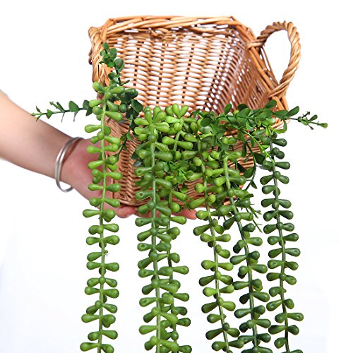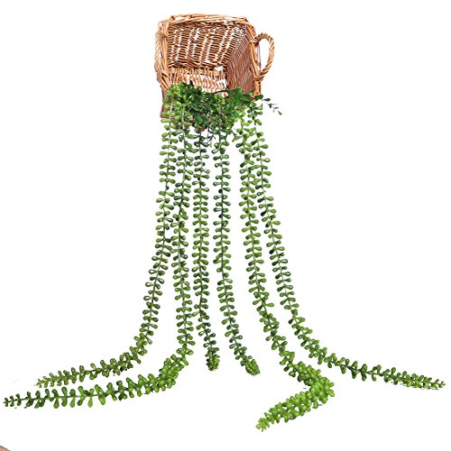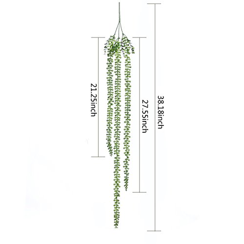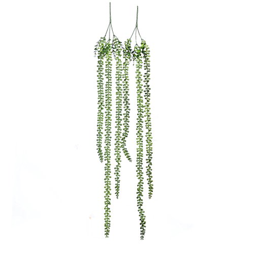Luyue 2 Pcs Artificial Succulent Plants String Of Pearls Senecio radicans 38.1'' Hanging Basketplant Cute Green Home Garden (Senecio Radicans)