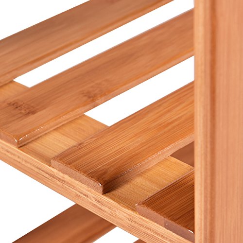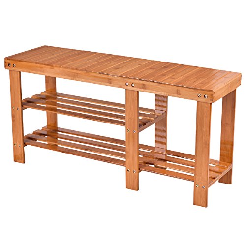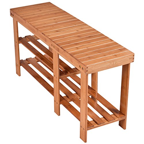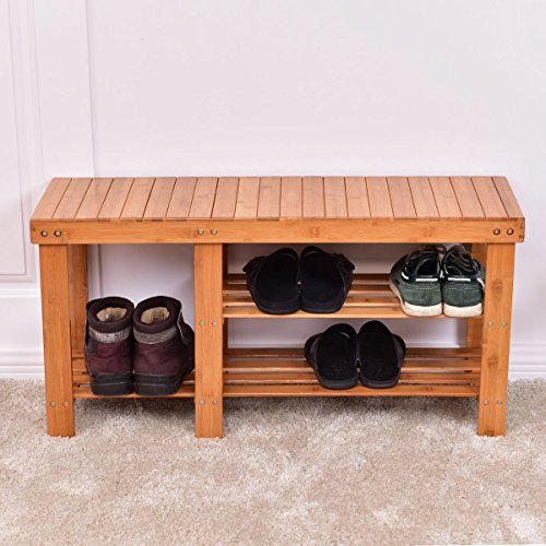-. Title : Shoe Bench 2 Tiers Boot Organizing Rack Entryway Storage Shelf Natural Bamboo