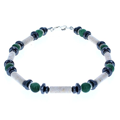 -. Title : Womens Aventurine, Riverstone, Hematite (Hemalyke) & Sterling Silver Ladies Beaded Gemstone Anklet