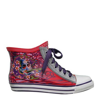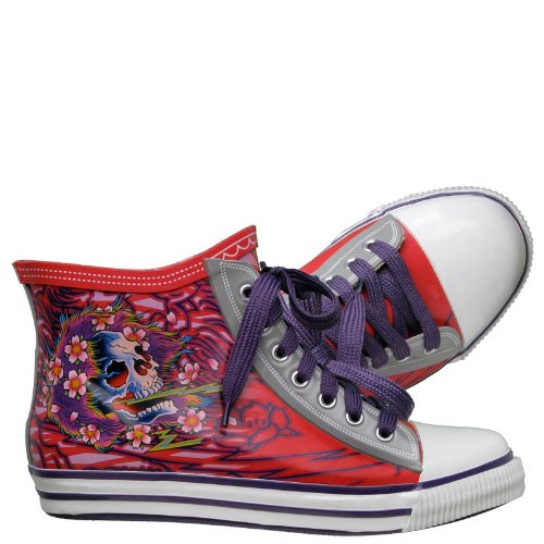 Studio : Ed Hardy Publisher : Ed Hardy Binding : Apparel Product Description Ed Hardy Harrison Rain Shoe For Women, Lace up front, Rubber Exterior and textile inner, with lightly padded insole. 0
