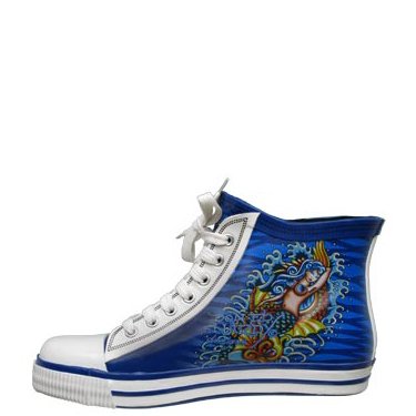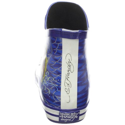 Amazon.com Hip, tattoo-inspired imagery and stitch-like graphics finish off this high-top Hudson sneaker from Ed Hardy. The slip-on design features an extra-roomy shaft, so you can pull it right on and go. You'll also appreciate the durable rubber outsole that flexes with every step. 0