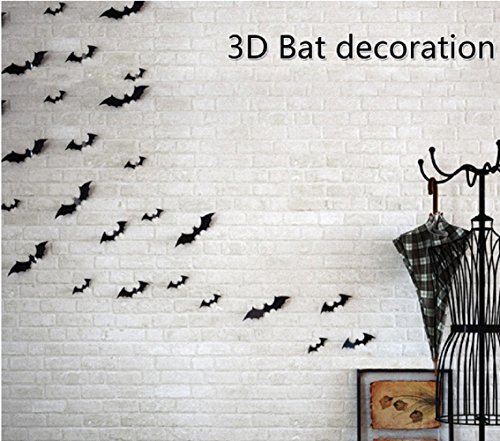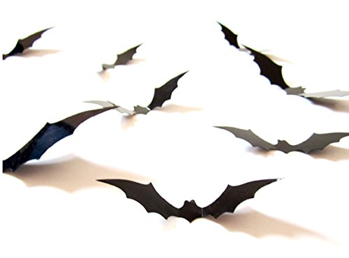 Yunko 12 Pcs 3d PVC Diy Black Bat Wall Decals Sticker,Halloween Eve Decor Home Window Decoration