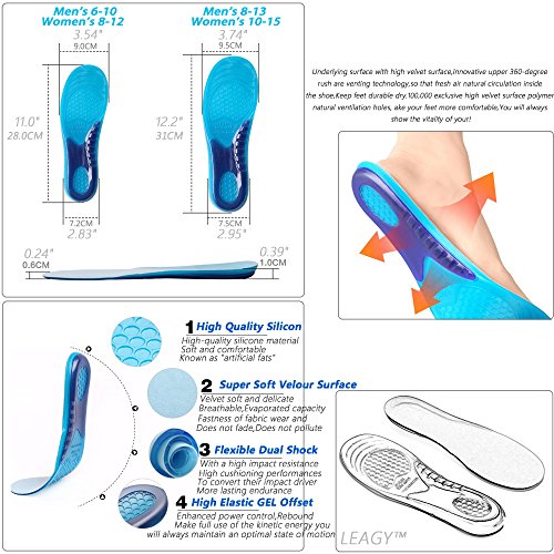 LEAGY Men's & Women's Memory Foam Orthopedic Silica Gel Shoe Insole, Sport Running Athletic Basketball Shoe Insoles Pads Inserts Pain Relief, Sports Insoles, Applies Any Violent & Chronic Sports
