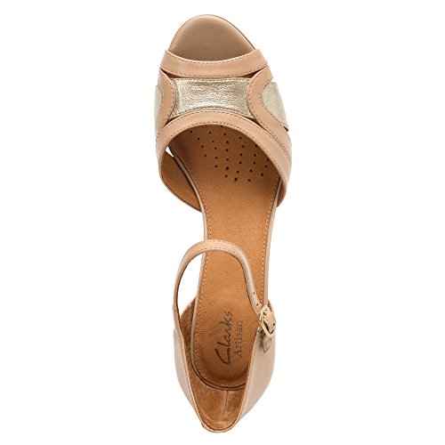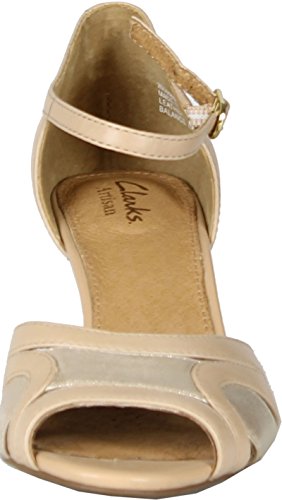 Studio : Clarks Artisan Publisher : Clarks Artisan Binding : Apparel Product Description Alluring curves and a graceful heel make this Clarks Artisan sandal a standout for spring. Crafted of rich black leather with a patent leather band, it features a cushioned footbed with Active Air for all-day comfort. Adjustable strap with buckle closure. Approx. 2' heel height. This stylish women's shoe can soften a tailored work suit, or go with a little black dress for a night on the town. 0