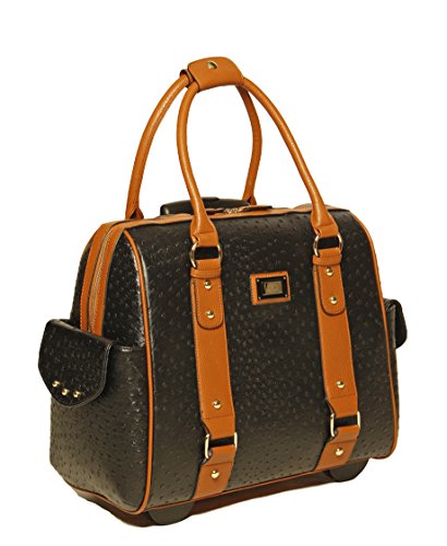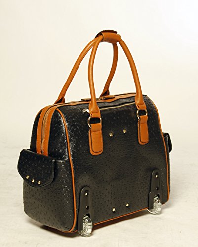 -. Binding : Personal Computers -. Brand : JKM and Company USA -. Color : Black, brown -. EAN : 0784672383592 -. Feature : Carry-on size for most airlines. Classic black faux leather ostrich pattern exterior with pebble texture brown trim. / Gold tone hardware plus accent pendant. Two large end pockets with magnetic snap closure. / Detachable interior padded pocket will fit your iPad, tablet, and up to a 16 inch laptop computer (measured corner to corner diagonally). Will also fit a 17" inch MacBook Pro measuring: Height: 0.71 inch (1.8 cm), Width: 14.13 inches (35.89 cm), Depth: 9.73 inches (24.71 cm). / Fully lined interior with a zipper wall pockets plus two open pockets. Secure dual zipper top closure. / Pull out retractable handle & durable inline style wheels for easy mobility.. -. Label : JKM -. Manufacturer : JKM -. Model : 3409850 -. MPN : 3409850 -. PackageQuantity : 1 -. PartNumber : 3409850 -. ProductGroup : Personal Computer -. ProductTypeName : CARRYING_CASE_OR_BAG -. Publisher : JKM -. Studio : JKM -. Title : JKM & Company USA Black Ostrich & Brown Faux Leather iPad Tablet or Laptop Tote Carryall or Rolling Briefcase -. UPC : 784672383592