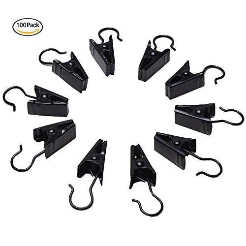 Leoyoubei 100 Pack Clip Hook Metal Hanging Curtain Clips for Curtain, Photos,Party Light Hanger Home Decoration Black (Hang or Clip Almost Anywhere)
