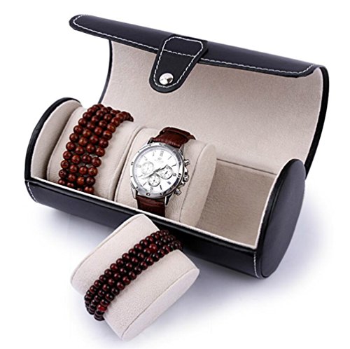 -. Title : 3 Watch Roll Organizer PU Leather Travel Jewelry Storage Case Box Holder Travel Collector