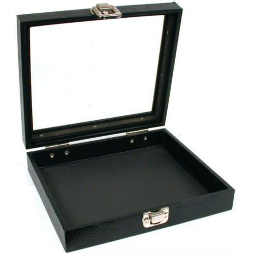 -. Feature : This is a new glass top black display tray case / This is great for keeping your items secure while traveling and easily displaying them / The glass top allows you to display your contents while keeping them dust free and secure / The latch on the lid help keep you from loosing any items / It measures approximately 8 1/4" x 7 1/4" x 2" (210 x 185 x 50 mm)