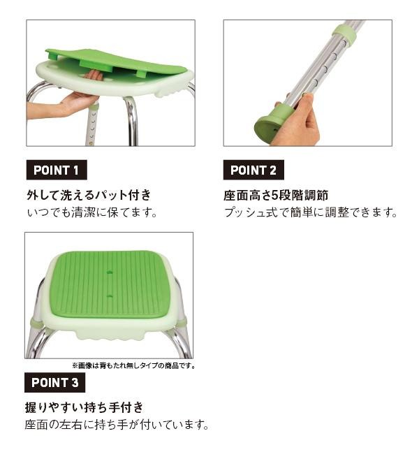 | 5段階高さ調節で使いやすい背もたれつきシャワーチェア。 |
