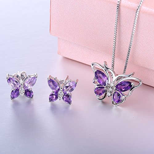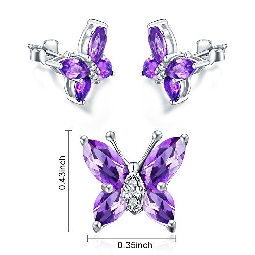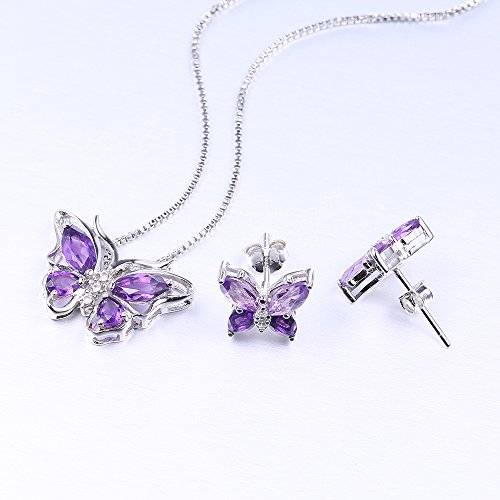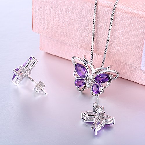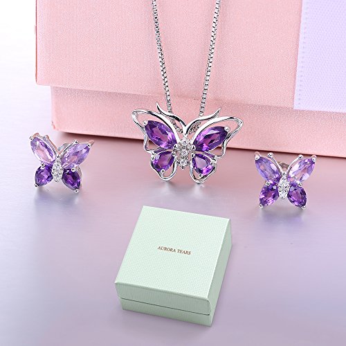-. Title : Aurora Tears Butterfly Jewelry Set Purple Created Amethyst Necklace Earrings for Women DS0035W