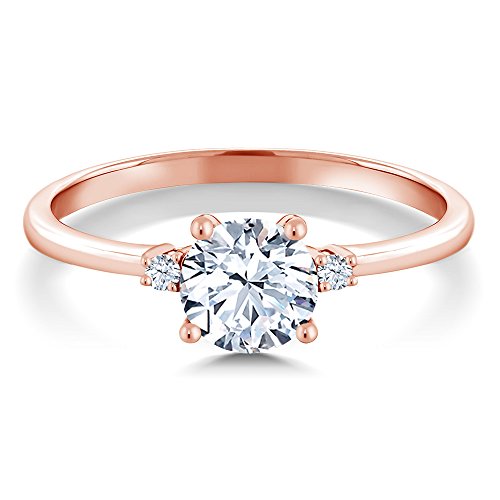 -. Title : 10K Rose Gold Engagement Solitaire Ring set with 1.23 Ct Round Hearts And Arrows White Created Sapphires (Available in size 5, 6, 7, 8, 9)