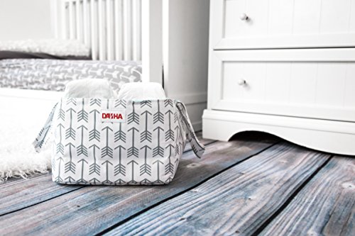 Diaper Storage Caddy By Danha – Portable Diaper Bag And Stacker With Beautiful White Gray Arrow Unisex Design – Changing Table Storage Basket And...