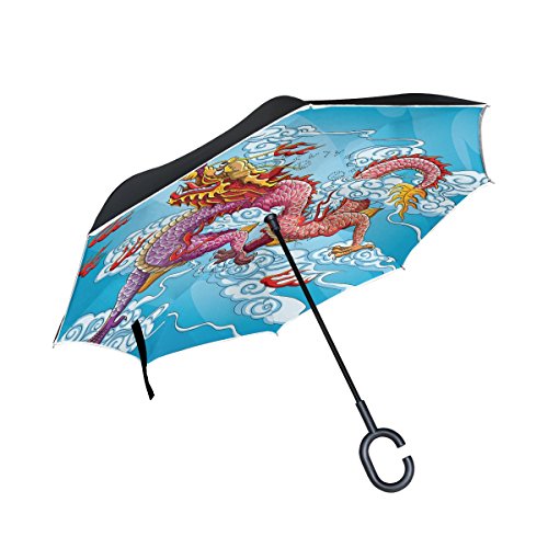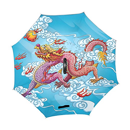 (LAVOVO)/Accessories/Umbrellas/DIRECT FROM USA/LAVOVO Chinese Dragon Painting Pattern Inverted Double Layer Windproof Straight Umbrellas Insid...