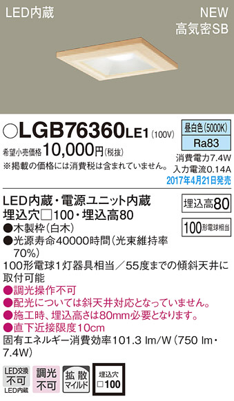 ●寸法(mm):埋込穴□100・埋込高80