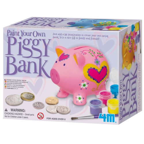 ReleaseDate : 2013-07-28 Studio : 4M Publisher : 4M Binding : Toy Product Description Start saving in style with the 4M Paint a Pig Bank. Add a bit imagination to this piggy to create your own personal savings bank. Everything you need to customize comes in this set including a paint strip, brush, and instructions for use. At 3-1/8-inches tall, this kid's bank fits perfectly on your child's dresser or desk. It serves as a great gift for young family and friends. Made using safe and high quality materials, this product is designed to last. Give the gift of crafting with toys and gadgets that foster curiosity and encourage scientific learning. Recommended for ages 4 and up. 0