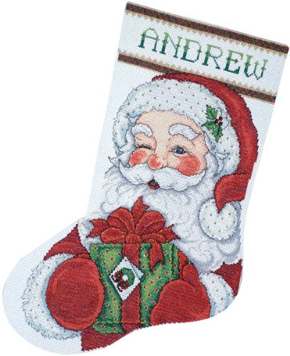 Tobin 14 Count Winking Santa Stocking Counted Cross Stitch Kit, 17-Inch Long