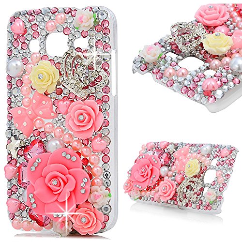 Galaxy Core Prime Case, Mavis's Diary® 3D Handmade Bling Crystal Pink Flowers with Cute Bow Shiny Crown Sparkle Diamonds Clear Hard PC Cover For Samsung Galaxy Core Prime SM-G360F G3606 G3608 G3609