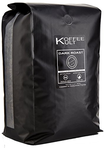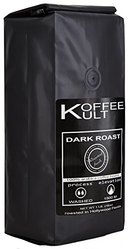 For coffee gourmet snobs that need a whole bean Dark Roast Coffee. You will not be able to walk thru your kitchen without opening this coffee just to smell these freshly dark roasted coffee beans which are 100% arabica coffee. These are the same artisan roasted coffee beans that you will find in gourmet stores, espresso bars and cafés! The fresh roasted coffee beans will get you hooked on gourmet coffee.Koffee Kult Dark Roast coffee is artisan small batch roasted on one of our 15 or 60 kilo coffee roasters overseen by a roast master with 25 plus years of experience. Koffee Kult Dark Roast coffees roasting profile is developed to second crack in the roasting process and then released into the cooling bin for a fuller, more even flavor. This coffee is roasted in the USA to USA food standards, not a third world country. Then packaged as whole bean coffee to ensure optimal freshness in a resealable coffee bag with a one way value to enable the beans to degas while keeping air out.