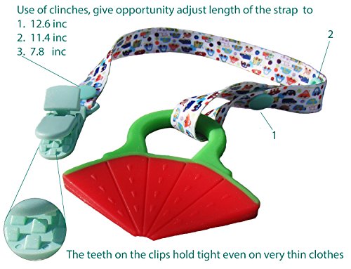●Teethers inside the box are packed in a hermetic plastic bag. Therefore, they are clean and ready for use ●With the help of clinches, the length of the strap is easy adjustable