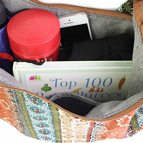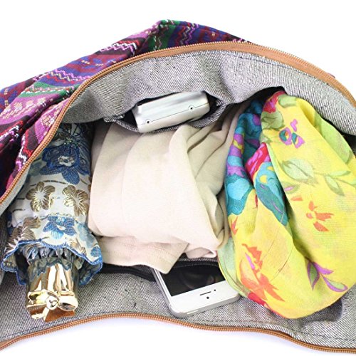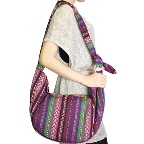 Product Description kilofly Bohemian Cloth Crossbody Bag, MiMi Series is made of cotton cloth with a unique Bohemian artistic look. With a knot tied to the small wooden ring, you can adjust the shoulder strap length, easily convert to a shoulder bag or crossbody. The wide strap lessens the pressure on your shoulder and top zipper assures the security of your personal belongings with inside pockets for sort and separation. It is perfect for school, daily outdoor activities like carrying books, laptops, personal belongings, grocery shopping or while travelling. Washing Instruction: Hand wash separately in cold water and avoid soaking; Inner denim texture may fade from frequent washing.