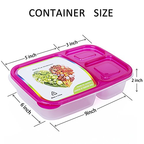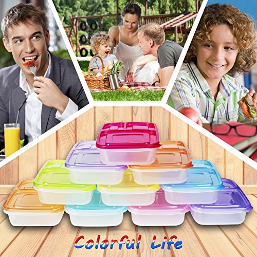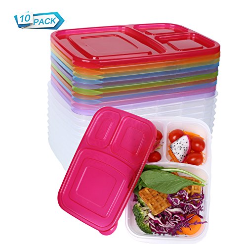 Plastic Meal Prep Containers Food Containers 3 Compartment Lunch Bento Box with Lids BPA-FREE,Reusable,Microwave,Stackable,Freezer,32oz【10 Pack】