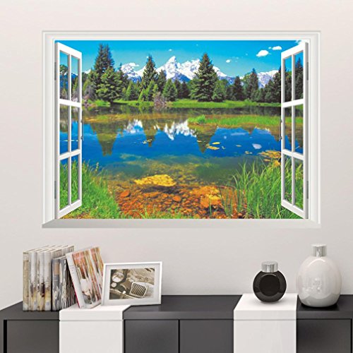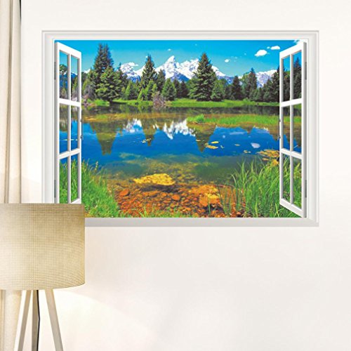 -. Title : Staron New Fake Window 3D Snow Mountain Wall Stickers,Removable Mural Wallpaper Room Bedroom Wall Decals Home Decors