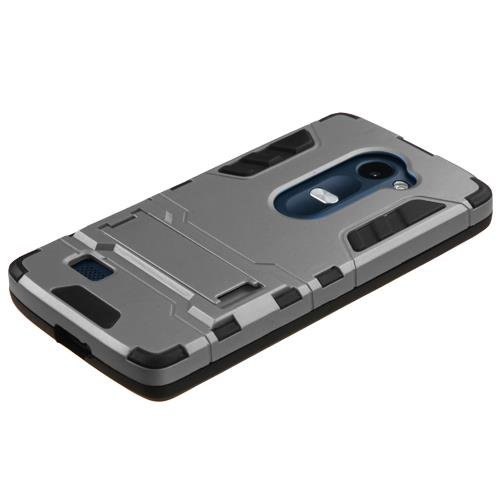 LG Leon LTE / LG Risio / LG Tribute 2 / LG Tribute Duo / LG Power / LG Destiny / LG Sunset Case - Armatus Gear (TM) Slim Iron-Bear Hybrid Armor Case Dual Layer Protective Phone Cover - Gray / Black