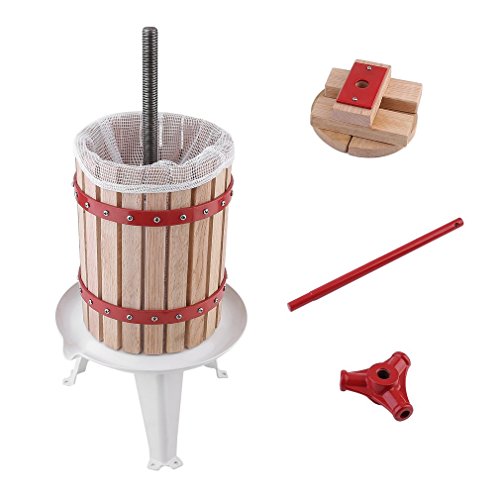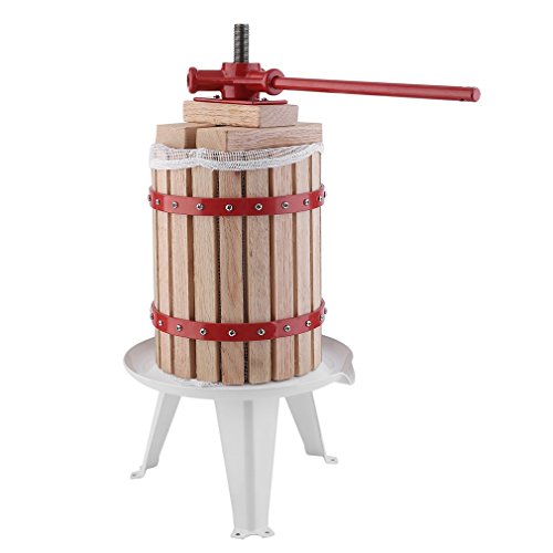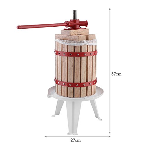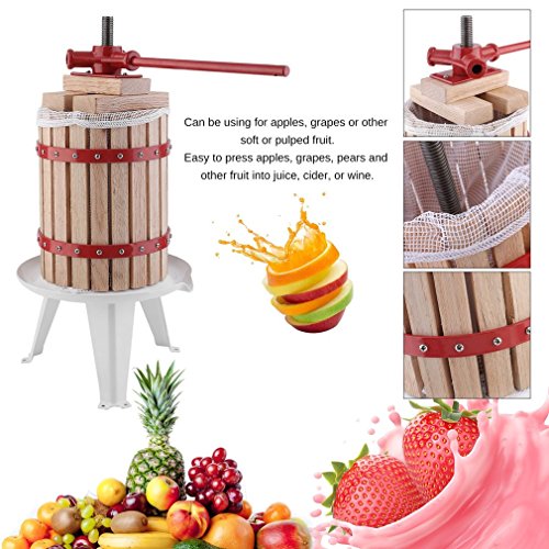 【Features】 ★ Can be using for apples, grapes or other soft or pulped fruit. ★ Easy to press apples, grapes, pears and other fruit into juice, cider, or wine. ★ Load the crushed fruit into the barrel cage, ratchet down the press, and the juice is squeezed out. ★ Made of oak basket which is moisture proof and resistant to insects. ★ A simple and powerful sturdy fruit press for hobby juice makers.
