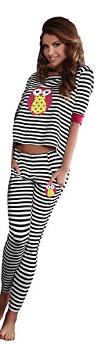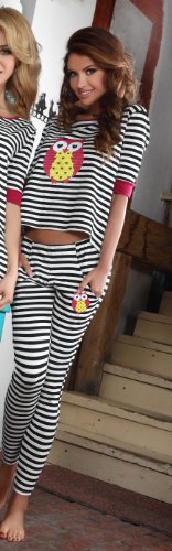 -. Binding : Textilien -. Brand : PIGEON Lingerie -. Department : Damen -. Feature : Süßer und fantastischer Baumwoll-Pyjama Hausanzug mit trendiger Eule der Marke PIGEON Lingerie direkt vom EU-Hersteller / Hochwertiges Markenprodukt in einer Box originalverpackt / Im trendigen, gestreiften Design und mit modischer Eule in Rot/Gelb. Halsausschnitt und 3/4-Ärmel in Rot / Lange, anschmiegsame Hose mit extravaganten Taschen, ebenfalls mit kleinem Eule-Aufdruck / Sehr elegant, anschmiegsam und angenehm zu tragen -. IsAdultProduct : 0 -. ProductGroup : Apparel -. ProductTypeName : SLEEPWEAR -. Title : PIGEON Lingerie fantastischer und extravaganter Baumwoll-Pyjama Hausanzug mit trendiger Eule
