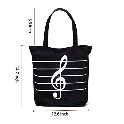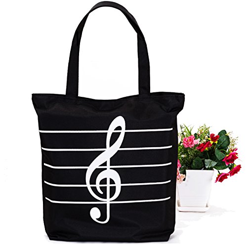 WOGOD Music Symbols Print Bag Cotton Bag Tote Handbag Shoulder Shopping Bags (black-Cotton)