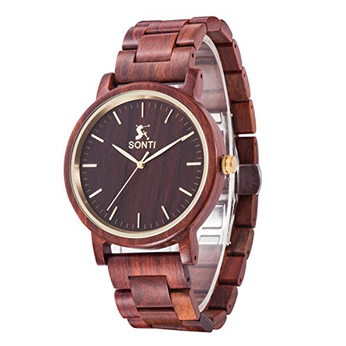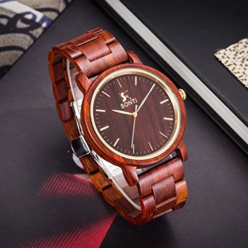 -. Feature : Luxury & Eco-friendly: Sentai mens wrist watch is made from high quality natural wood that is Special Designed for people with allergies and sensitive skin, so no metal ever touches the skin or People like to touch nature. (Non-toxic Hypo-allergenic). / Adjustable Band & Folding Clasp: You can easy to resize the watchband to fit your wrist. Folding Clasp very convenient to take on and off, with pressing buckle, it can effectively prevent falling down accidentally. If you want to change the size of the band,you can use a tool to take off the button and resize it as you want. Try NOT to get wet or soak in the water in daily life. / Imported Japanese Quartz Movement: Featuring highly accurate and precise Japanese analog watch movement, which offers long-lasting usage for up to 36 months. / Handmade & Unique Vintage Style: Men's wrist watch handmade by artisan craftsman. It is light and comfortable to wear. The wood band is smooth and feels nice.Casual and Retro style which is unique and cool. / Excellent Gift: Carefully prepared, packaged and delivered to you in watch box, Sentai handmade wooden Watch is a great gift choice to your loved ones for Christmas, birthday, anniversary, Father's Day, graduation or Valentine's Day.It can always attract the attention from your friends and get good compliments.