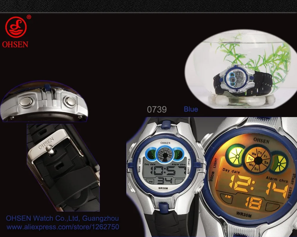 Feature:Alarm,Back Light,Water Resistant,Chronograph,Shock Resistant,Stop Watch,Complete Calendar,Auto Date,LED display,Diver