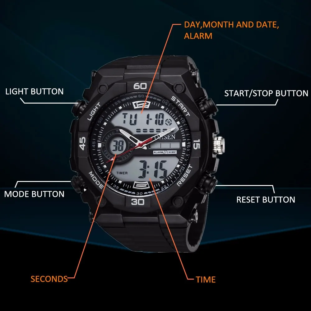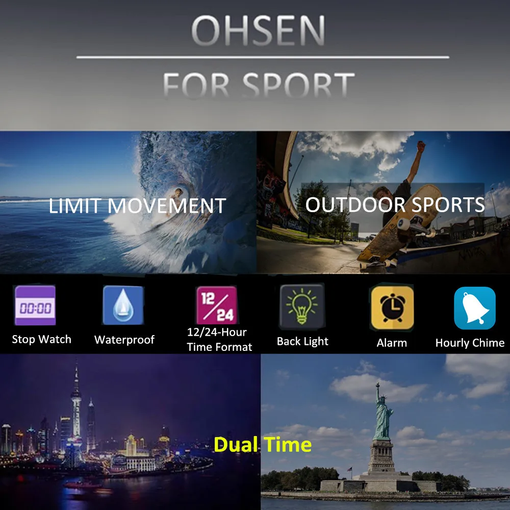 Feature:Alarm,Back Light,Water Resistant,Multiple Time Zone,Chronograph,Shock Resistant,Stop Watch,Complete Calendar,Swim,Auto Date,LED display,Diver