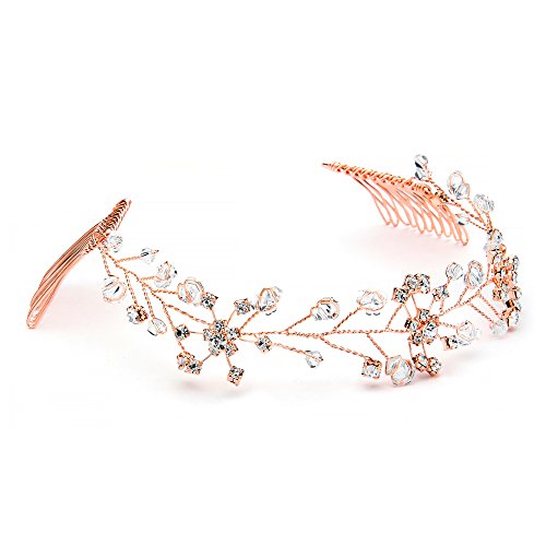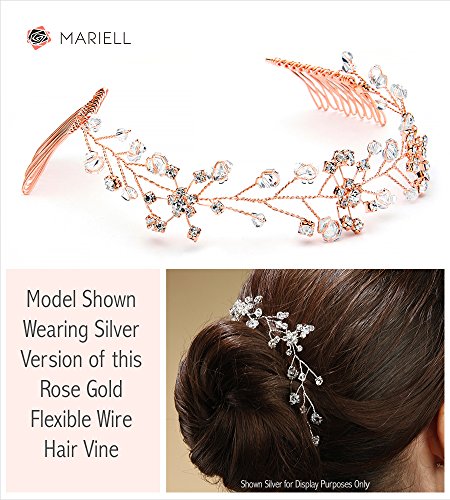 Mariell's Top-Selling Rose Gold Wedding Vine Headpiece with Swarovski Crystals and Rhinestone Sprays; Flexible Tiara Hair Vine Accommodates Any Bridal Hairstyle or Updo