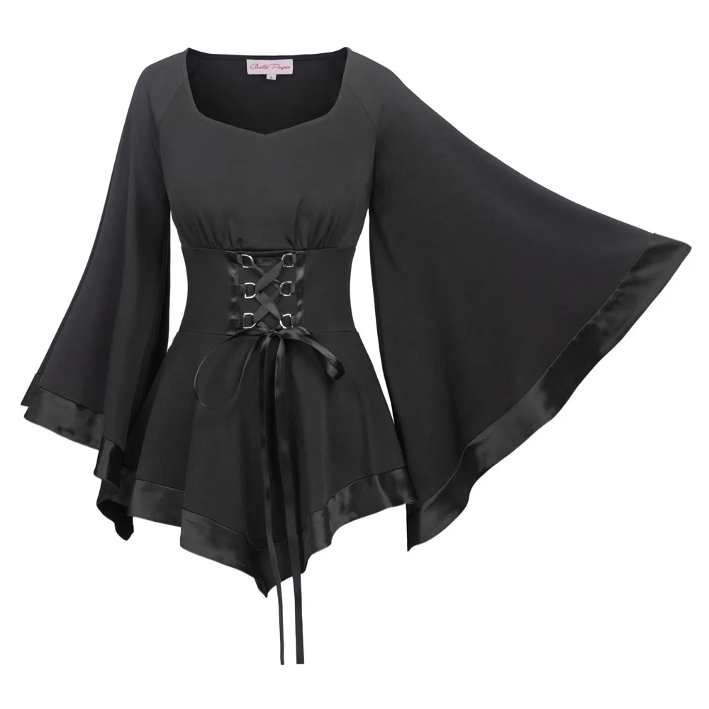 Tops Color Style:Goth Punk Steampunk Victorian Medieval Gothic Blouses2018