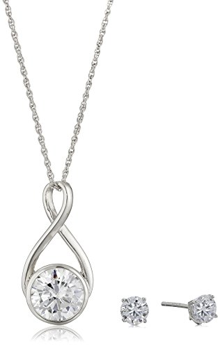 -. Feature : Symbolic of love's never-ending strength, the infinity pendant on this simple, sleek necklace is a lovely representative of the power of love, while cubic zirconia stud earrings complete the look. / Lobster-claw necklace clasp / Friction-back earrings / Crafted in .925 sterling silver / Imported
