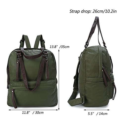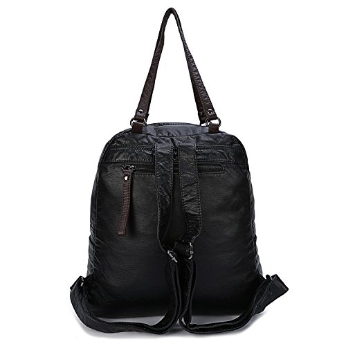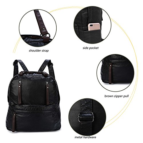 -. Feature : DIMENSIONS: 11.8*5.5*13.8 in, 30*14*35 cm WEIGHT: 2.2 pounds. Please confirm the dimensions of the bag before your purchase. / HIGH QUALITY MATERIAL. Genold washed leather backpack purse is made of ultra soft synthetic water resistant black PU leather features with brown zipper puller durable tungsten steel color hardware and very smooth metal zippers. / THREE WAYS CONVERTIBLE PURSE. Backpack carried by two adjustable back straps. Using the two top loop handles to make this bag into a single shoulder bag and casual handbag. / LARGE CAPACITY. Exterior small front zipper pocket and a top pocket with two zippers are perfect for your small items easy to access such as keys, napkin, cellphone, etc. Interior main zipper compartment contains a zip pocket and two open pockets can perfect carry your 13.3 inch laptop, A4 size magazines, iPad, books, wallet and other daily stuff. Two side pockets for the umbrella and cup. A small back zipper pocket perfect hold your other small items. / CASUAL & FASHION STYLE. Genold classical black leather women backpack purse is perfect for ladies and girls as a vacation, travel, shopping shoulder handbag, school book bag, casual daypack. Great Thanks Giving/ Christmas gifts for everyone you love!