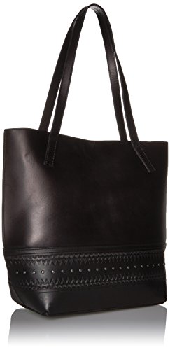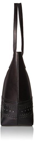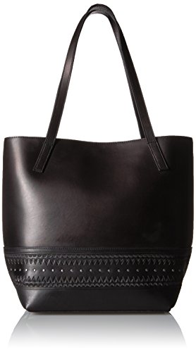 -. Feature : • leather• polyester lining• mag snap closure • 2 media pocket, 1 zip pocket• 18 w x 13 h x 6 d• 11" shoulder strap• tooled design• petite stud detail• fits 15" laptop
