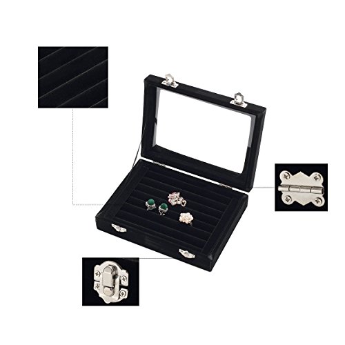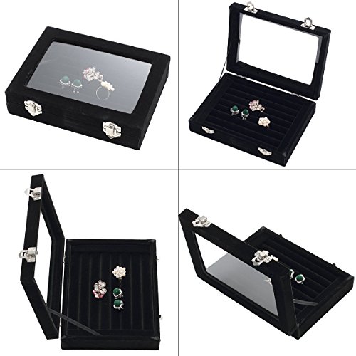 Pasutewel 7 Slots Velvet Glass Ring Jewellery Display Storage Box Tray Case Holder Earring Organizer Stand