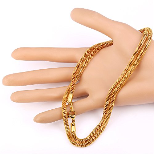 - Feature : Stainless steel and 18k gold plated / Width: 5mm/0.2 inch / Lobster clasp / 18K Stamp / Sexy mesh chain,suitable for male and female!
