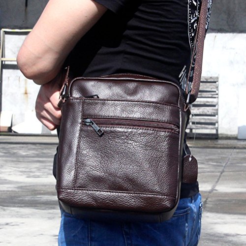 -. Feature : shoulder bag strap / This is a lovely, well-made small bag useful for carrying train tickets, glasses, mobile phone, headphones, keys, phone charger, travel documents and other odds and ends. / Wonderful gift for good friends,boyfriend, husband, father,son and yourself.Perfect for storing necessities like cell phone, keys, small camera, pens, small tools, passport, or other itmes. / Premium first layer grain cowhide Leather Material: More thicker and durable. Perfect finishing and smooth touching feeling. / Size: 23*19*8cm(9*7.4*3.2inch), pls allow about 1-1.5" differs due to manual measurement.