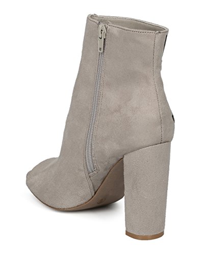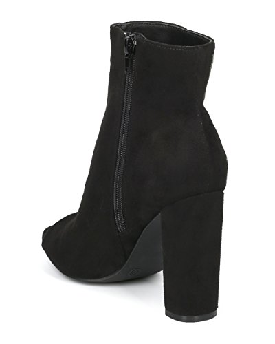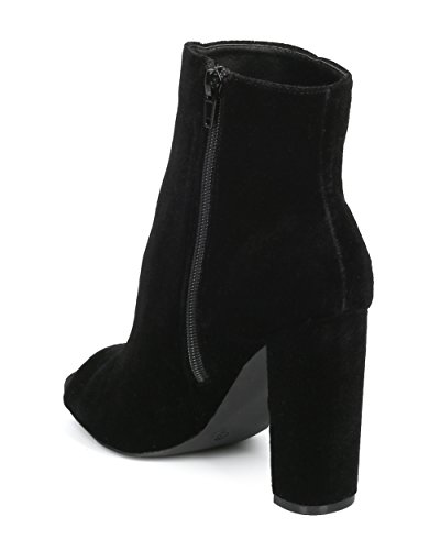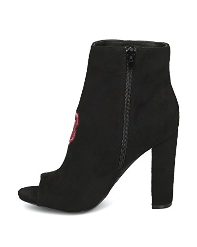 Product Description These embroidered booties are made with a faux suede upper, peep toe and single sole. Also made with a chunky heel and side zip for easy to slip on and off. 0